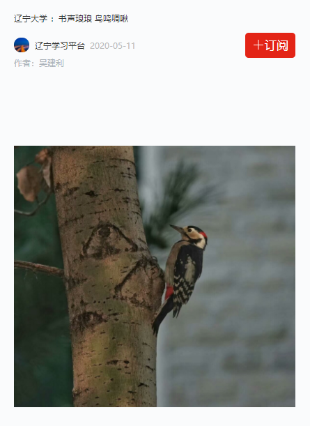 近日,“学习强国”辽宁学习平台以《365英国上市官方网站 :书声琅琅 鸟鸣啁啾 》为题,发布了我校教师吴建利所拍摄的校园鸟类摄影作品。现将报道截图转载如下: