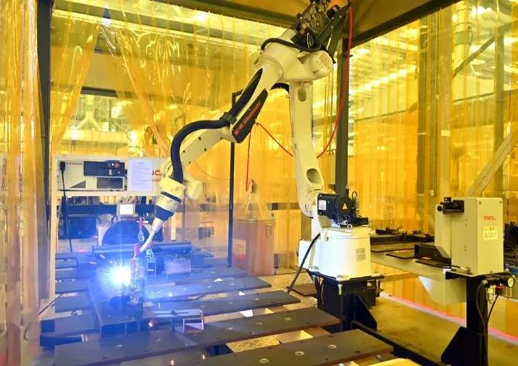 An automated robot welds a bicycle part in a workshop in Rizhao, Shandong Province, on August 30 (XINHUA)