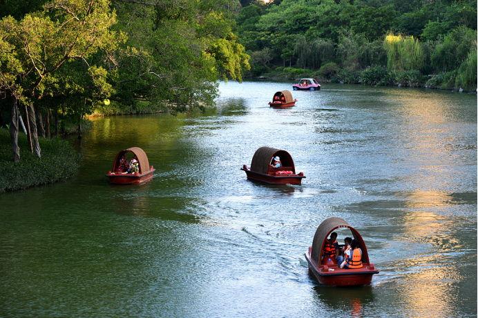 △游客们自驾游船在中国南部的福州流花溪游玩(源自:视觉中国)