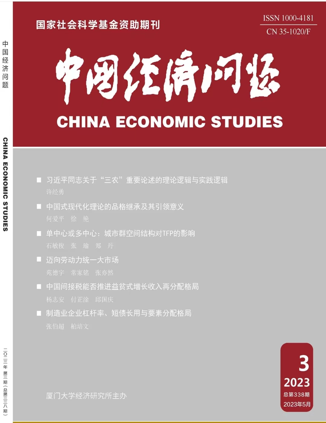365英国上市官方网站经济学院杨志安教授与其指导的博士生付正淦、邱国庆副教授合作在《中国经济问题》2023年第3期发表封面论文《中国间接税能否推进益贫式增长收入再分配格局——基于中国家庭追踪调查(CFPS)微观数据测算模拟》。