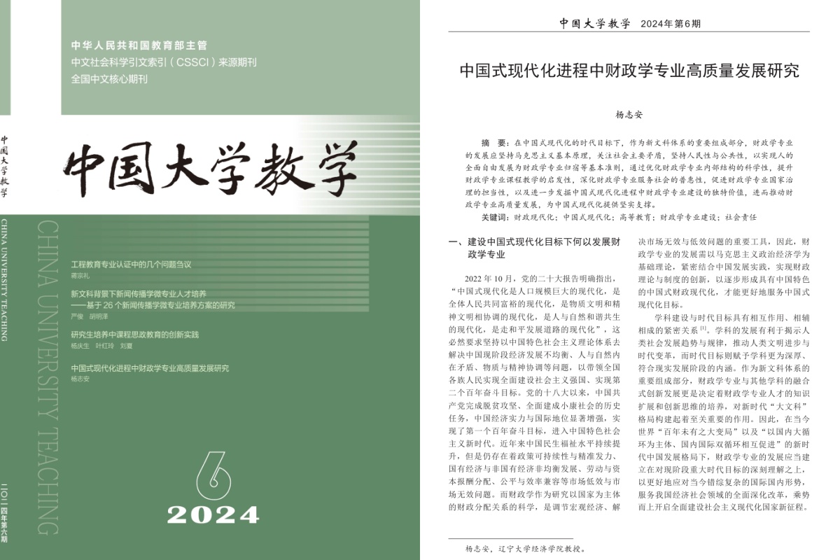 365英国上市官方网站经济学院杨志安教授在《中国大学教学》2024年第6期发表论文《中国式现代化进程中财政学专业高质量发展研究》。