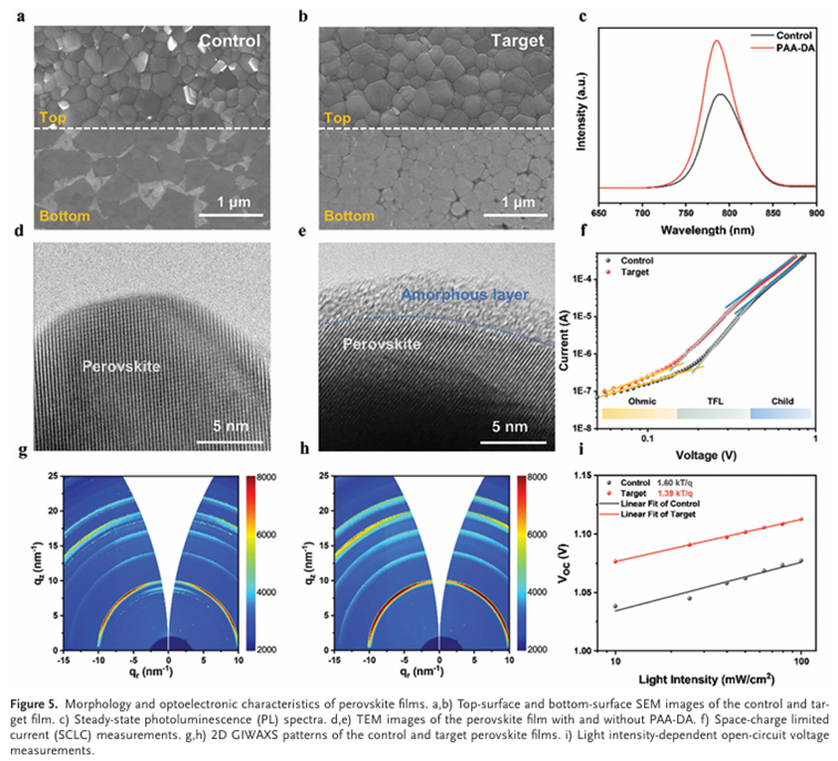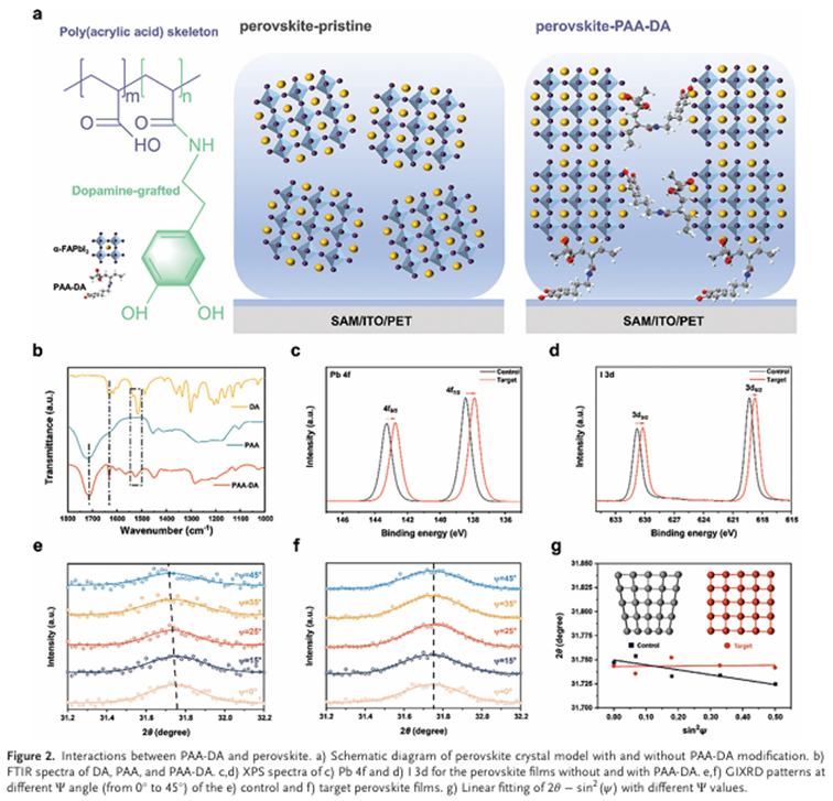 日前,以“Multiple Dynamic Hydrogen Bonding Networks Boost the Mechanical Stability of Flexible Perovskite Solar Cells” 为题的论文发表于国际顶级学术期刊Advanced Functional Materials上,365英国上市官方网站物理学院博士生朱思源为论文第一作者,365英国上市官方网站物理学院丁勇教授、北京理工大学姜岩教授、松山湖实验室梁齐杰教授为论文共同通讯作者。